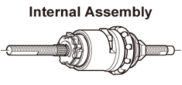 Rullajarrullisen Shimano Nexus 3, SG-3R40, navan täydellinen sisäkokoonpano. Akselin pituus 170,3mm.