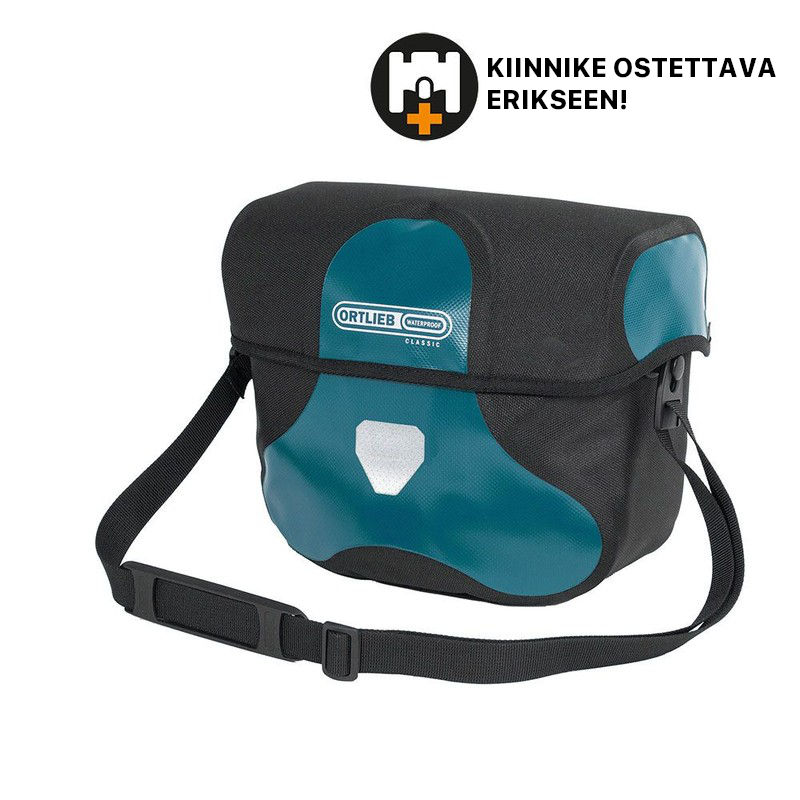Ortliebin tankolaukun materiaalit ovat vesitiiviitä. Laukku suljetaan magneetilla ja sen käyttö on helppoa myös yhdellä kädellä. Mukana tulevalla olkahihnalla laukku kulkee helposti mukana.